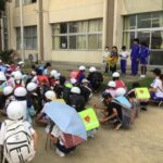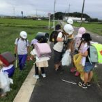 交通安全面も含め、保護者の方や地域の方にも協力していただき、各地区に分かれて道端のごみを拾いました。