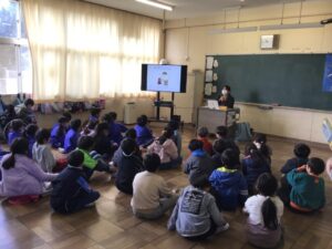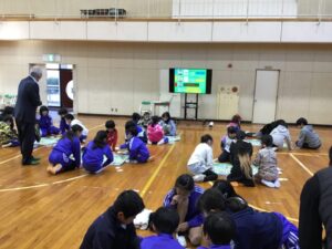 「自分の命は自分で守る」「自分にできることを考える」ことの大切さを教えていただきました。また、児童から「避難所で気持ちがモヤモヤした時は?」という質問に「他の人に自分の気持ちを話しましょう。避難所でも楽しいことをしてもいいよ。」と、教えていただきました。