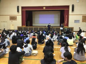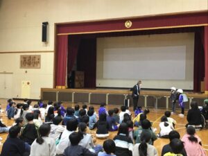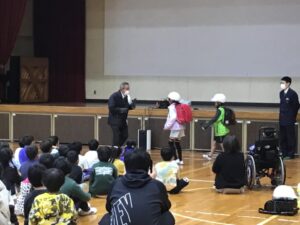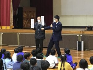 12月16日(火)、松阪警察署生活安全課の方にお越しいただき、登下校時などで不審な人に出会った時の対処について教えていただきました。