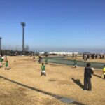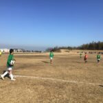 当日は、集合してから、ウォーミングアップで体を動かし、10時、花岡小学校との試合がキックオフとなりました。