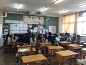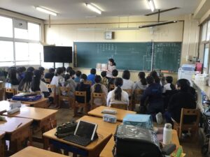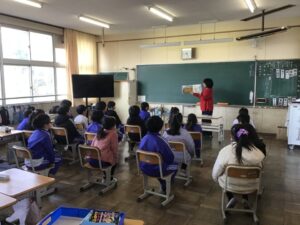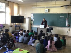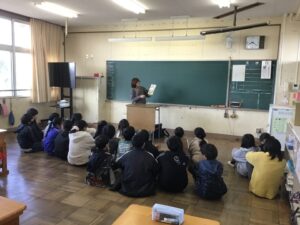 今日は、猿がイメージする「まわるおすしやさん」の話、落語がもとにになっている「てんしき」の話、ボブ・ディランさんの「はじまりの日」、低学年にはクイズを織り込んだお話など、学年に合わせた本をセレクトしていただき、読んでいただきました。いつのもなら、教室に入るとすぐに姿を見つけて挨拶をしてくれる子どもたちですが、よみきかせの時には、扉が開く音がしても、カメラのシャッター音が聞こえても、誰も後ろを振り向いてくれない、いい子たちです。来年度の再開が待ち遠しいですね。