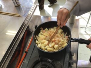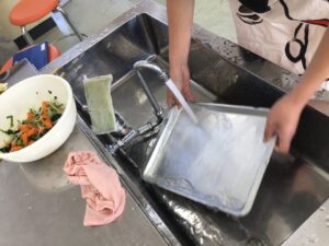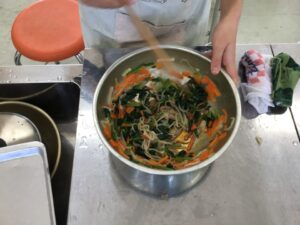 昨日の5年生に続き、3・4限目に6年生が調理実習をしました。今日の献立は「ジャーマンポテト」と「ナムル」。さすがは6年生!野菜🥕🥔も手際よく切り、調理と洗い物担当を分担しながら、ライブキッチンのように調理が進んでいました。時間内にすべて完成し、授業などいつもお世話になっている先生方にもおすそわけを届けてくれました。あたっか~い心のこもった、ジャーマンポテトとナムルでした。ぜひ、お家でも大切なご家族にふるまってほしいと思います。